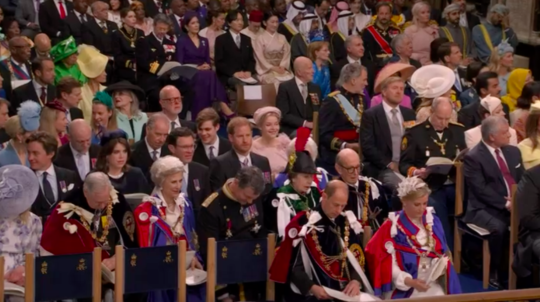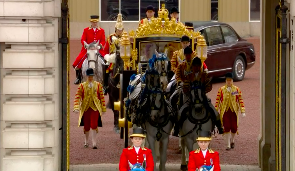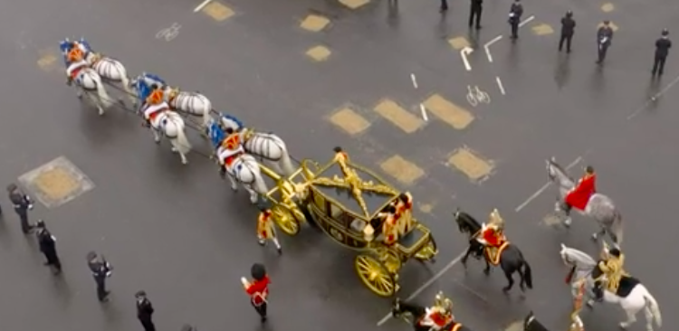 17:40頃からチャールズ国王とカミラ王妃がバッキンガム宮殿を金の馬車に乗ってパレードされている最中です。以下で見られます。雨の中、国民も沿道で出迎えています。戴冠式には、オランダ国王夫妻、ベルギー国王夫妻が出席でした。紀子妃殿下はお着物をお召しになっています。スウェーデン国王の席次が1番のようです。ブルネイ国王と王子も最前列です。