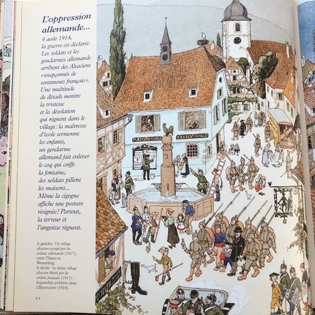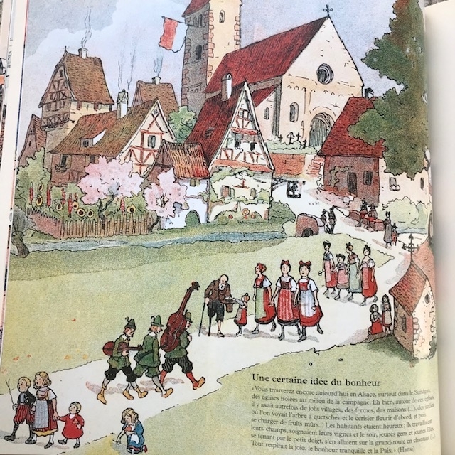 岩崎ちひろも反戦家でしたが、アンジもそうです。牢獄に入っていたのは思想犯てことだったのでしょうか。でも徴兵もされています。アールヌーボー風の絵があったことは、この本で知りました。アルザスの子供たちが、実際に竹槍じゃありませんが、棒を持って戦争ごっこ?をしている写真はちょっと胸をつかれます。可愛らしい絵で、食器のデザインに使われているアンジですが、銃を持つ子供たちもよく描かれているのはそういうわけなんですね。