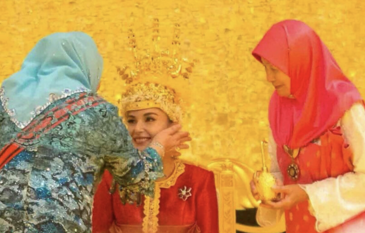新婦のAnisha Rosnah Binti Adamさん 1月10日国王の公邸であり、政府庁舎でもあるイスタナ・ヌルル・イマンにて、The Berbedak Mandi ceremony