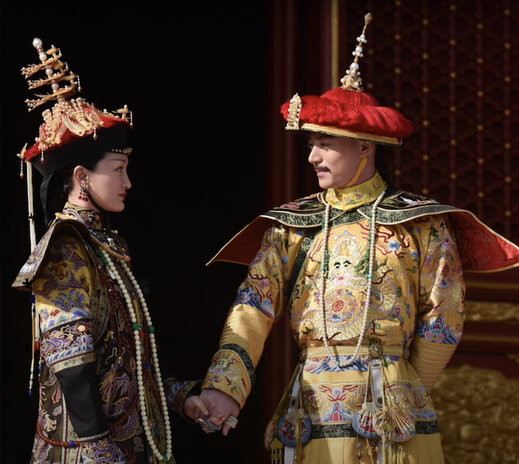2024-12-24 清の衣装 ヌルハチのあと、二代目ホンタイジが、女真族と金という国名を、満州族と清に改名して、明の反乱のどさくさを利用して、清に統一してしまった。やり手ですね。 シックな色使いで話題になったドラマだそうです。 脇に深いスリット。 故宮の学者によれば、こちらのドラマの方が、実際の衣装に忠実なのだとか。